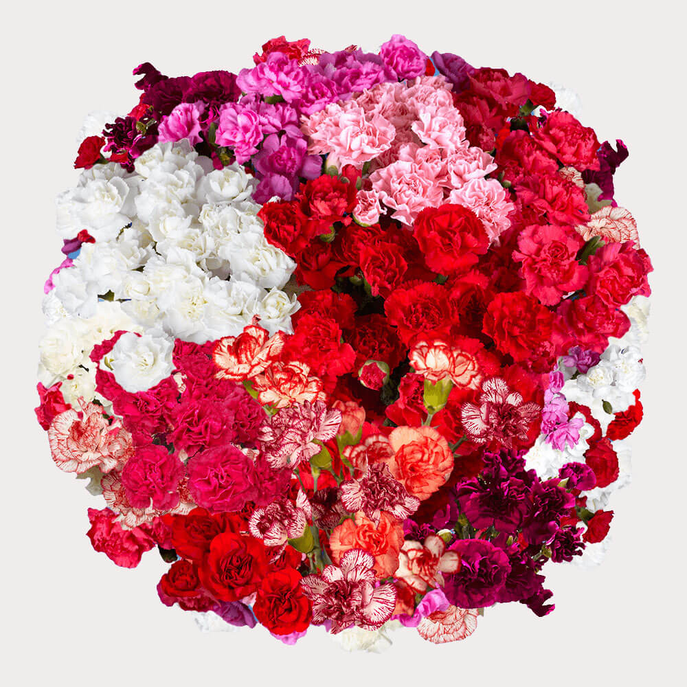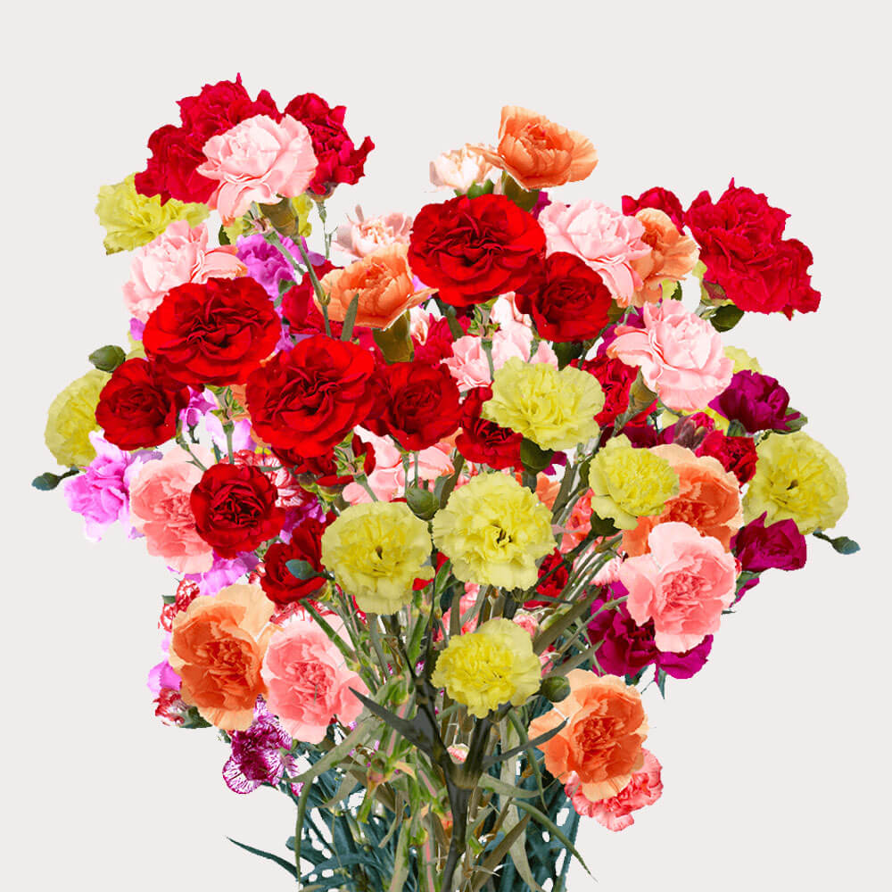 Mini Carnations are dainty versions of the classic bloom, offering versatility and charm. These flowers bring elegance and whimsy to any arrangement with their abundance of petals and vibrant colors. Consumer Bunches Their compact size and resilient nature make them suitable for a variety of uses, from boutonnieres and corsages to intricate centerpieces and everyday floral displays. Symbolically, Mini Carnations carry the same meanings as their larger counterparts, often representing love, fascination, and distinction. Our Products